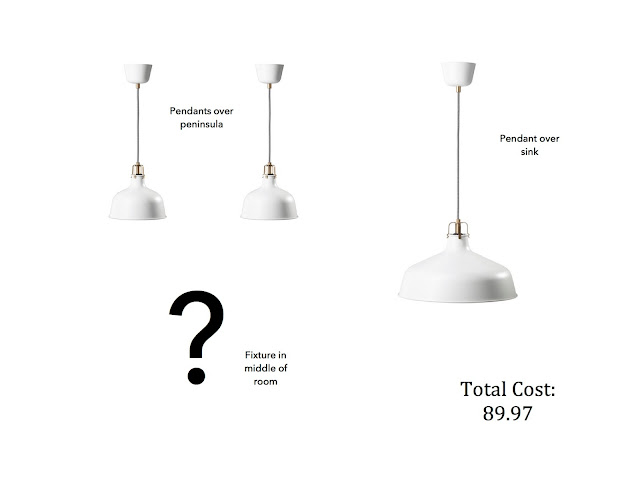 kitchen - we have all the pendants figured out, we still have to decide what to put in the middle of the room - if we are still doing that - and what to put in the eat-in area of the kitchen.